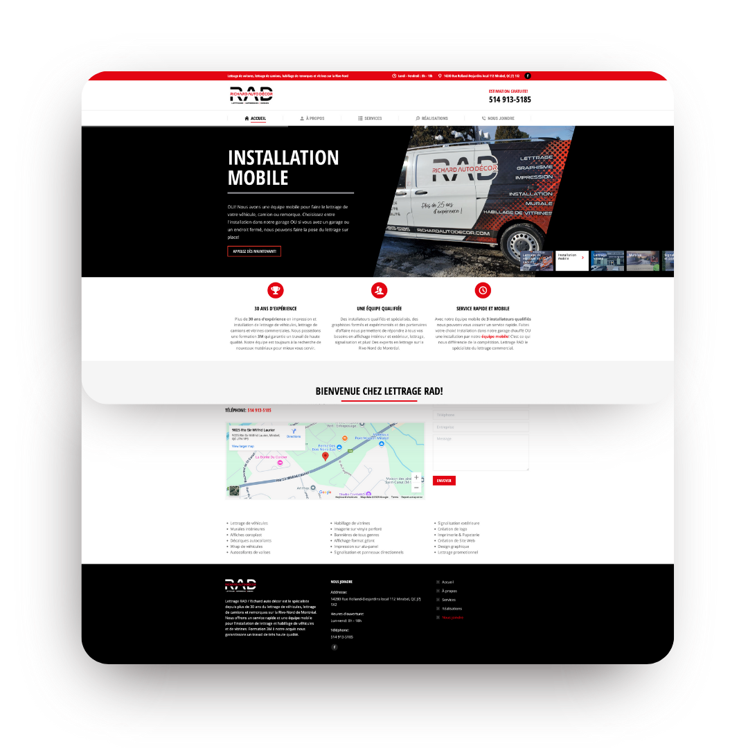 Chez 6 SENS COMMUNICATIONS, chaque réalisation est pensée pour refléter l’identité unique de nos clients. Nous offrons des services marketing, de design graphique et de création web adaptés aux besoins des petites et moyennes entreprises de la Rive-Nord. Découvrez un aperçu concret de notre savoir-faire à travers des projets variés, conçus avec passion, précision et stratégie.